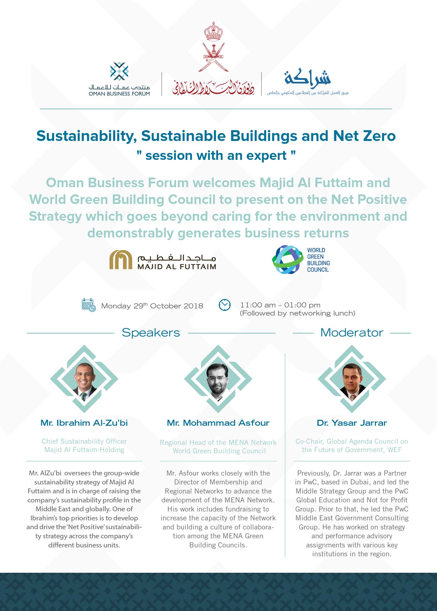 Oman Business Forum welcomes Majid Al Futtaim and World Green Building Council to present on the Net Positive Strategy which goes beyond caring for the environment and demonstrably generates business returns.